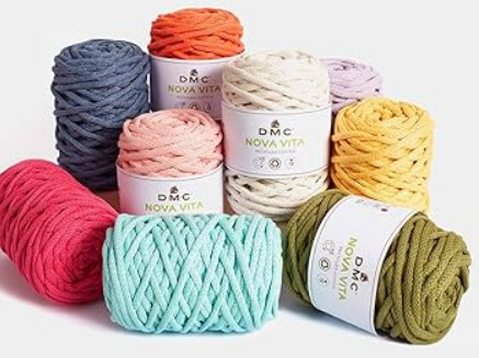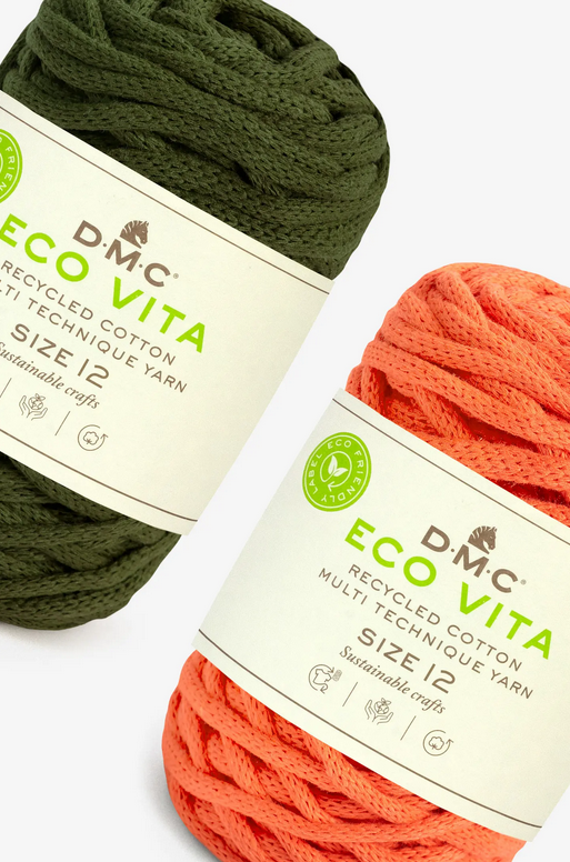 DMC Eco Vita 12 è un filato tubolare spesso 4 mm, composto per l’80% da cotone riciclato e il 20% da poliestere riciclato. Morbido, resistente e flessibile, è ideale per realizzare accessori per la casa, borse e progetti di macramè. Disponibile in una vasta gamma di colori, ogni gomitolo da 250g offre circa 55 metri di filato.